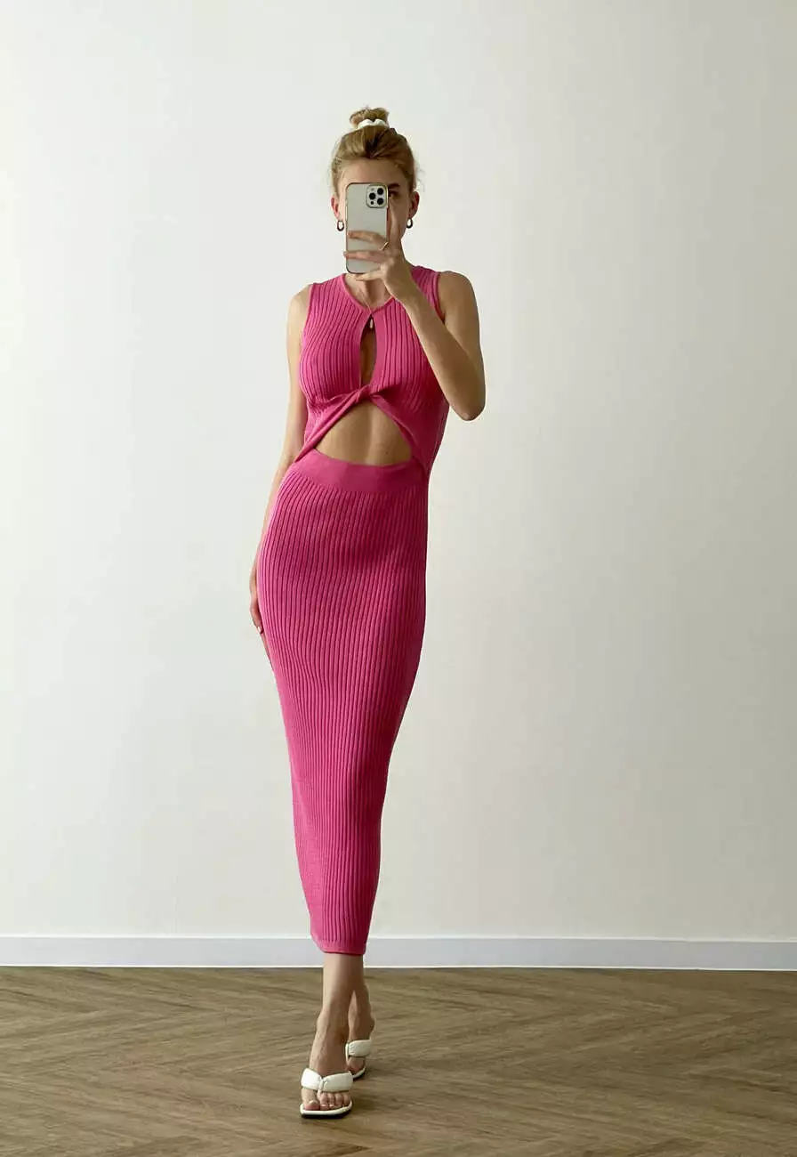Вишукана жіночна сукня з перекрутом на грудях у літній варіації без рукавів. Підкреслює індивідуальний стиль та жіночність.
