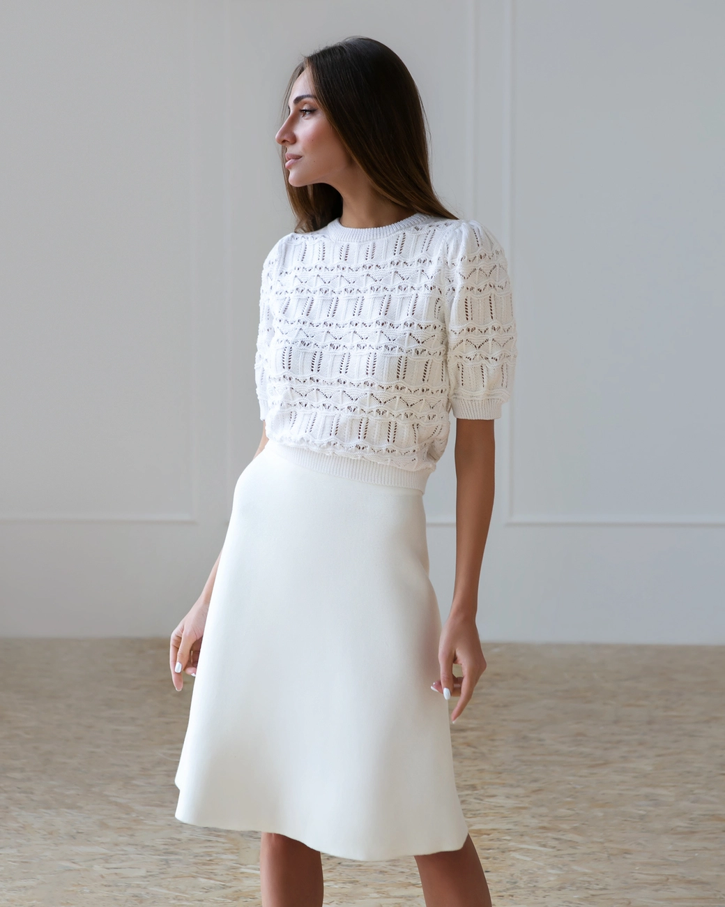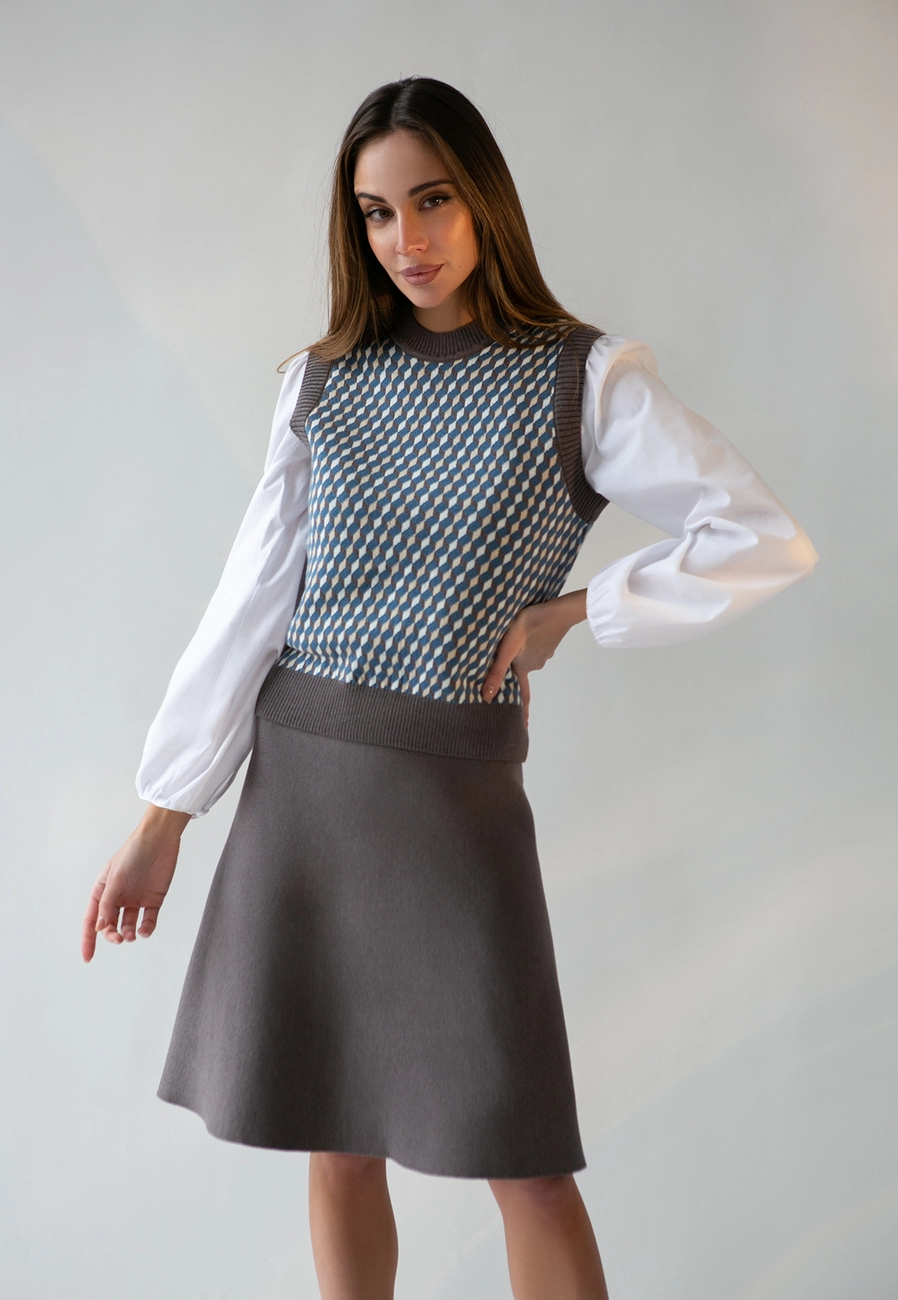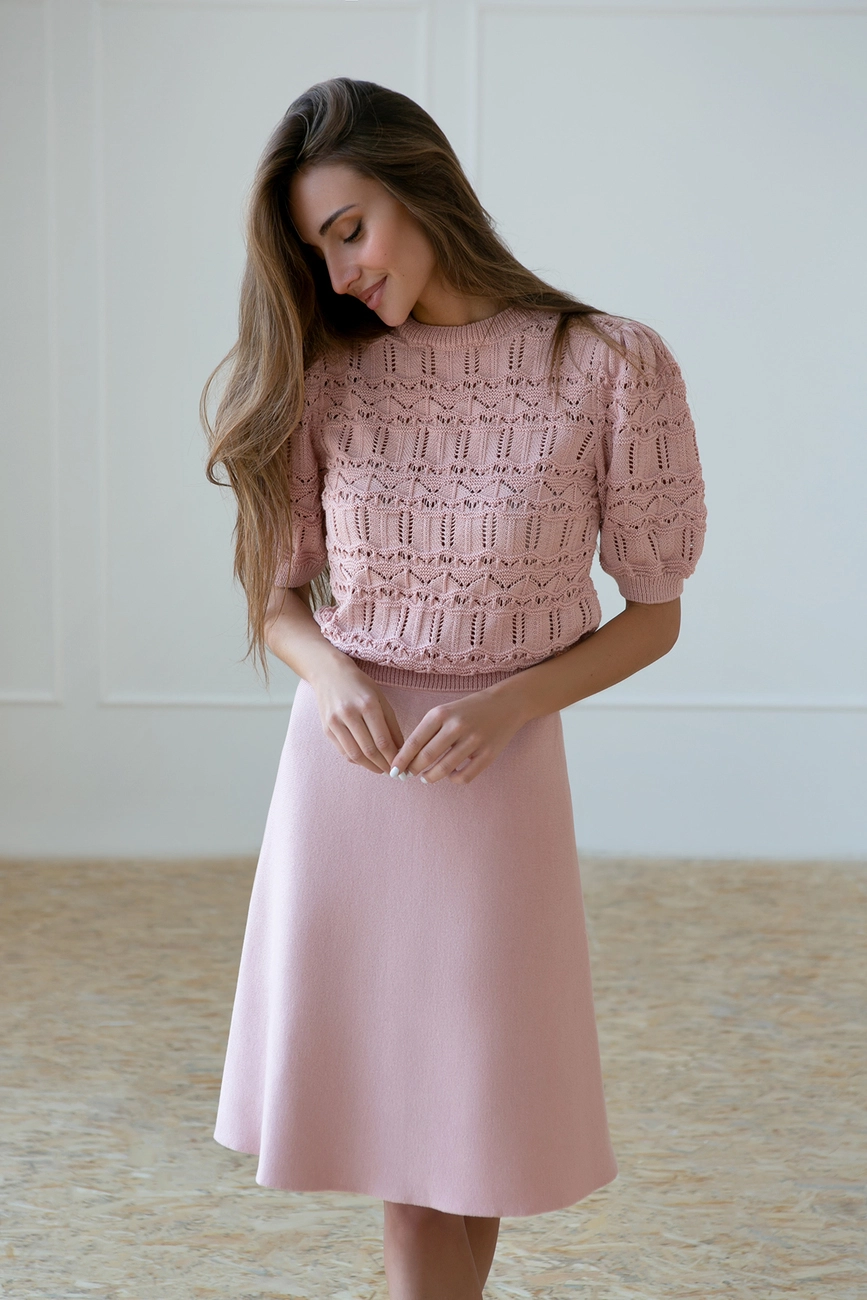 Спідниця дзвін виконана з ніжної натуральної бавовни. Спідниця стильно поєднується із сорочками, жилетами та блузами. Чудово підходить для ділового образу.