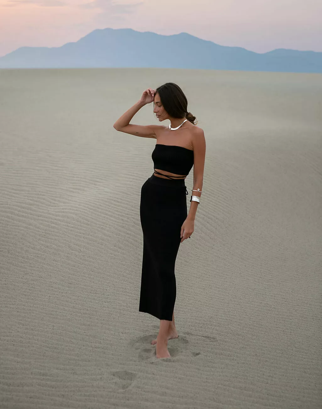 Спідниця міді прямого фасону зі шліцею, виконана з ніжної натуральної бавовни.