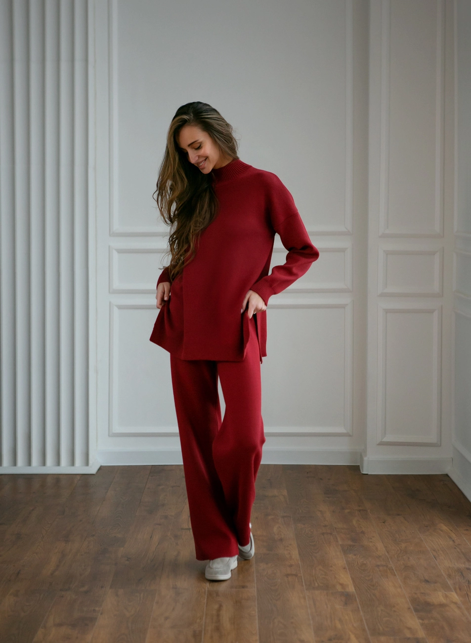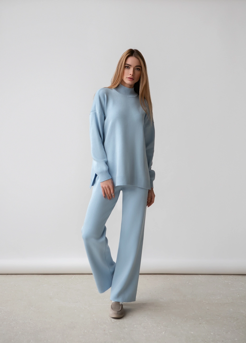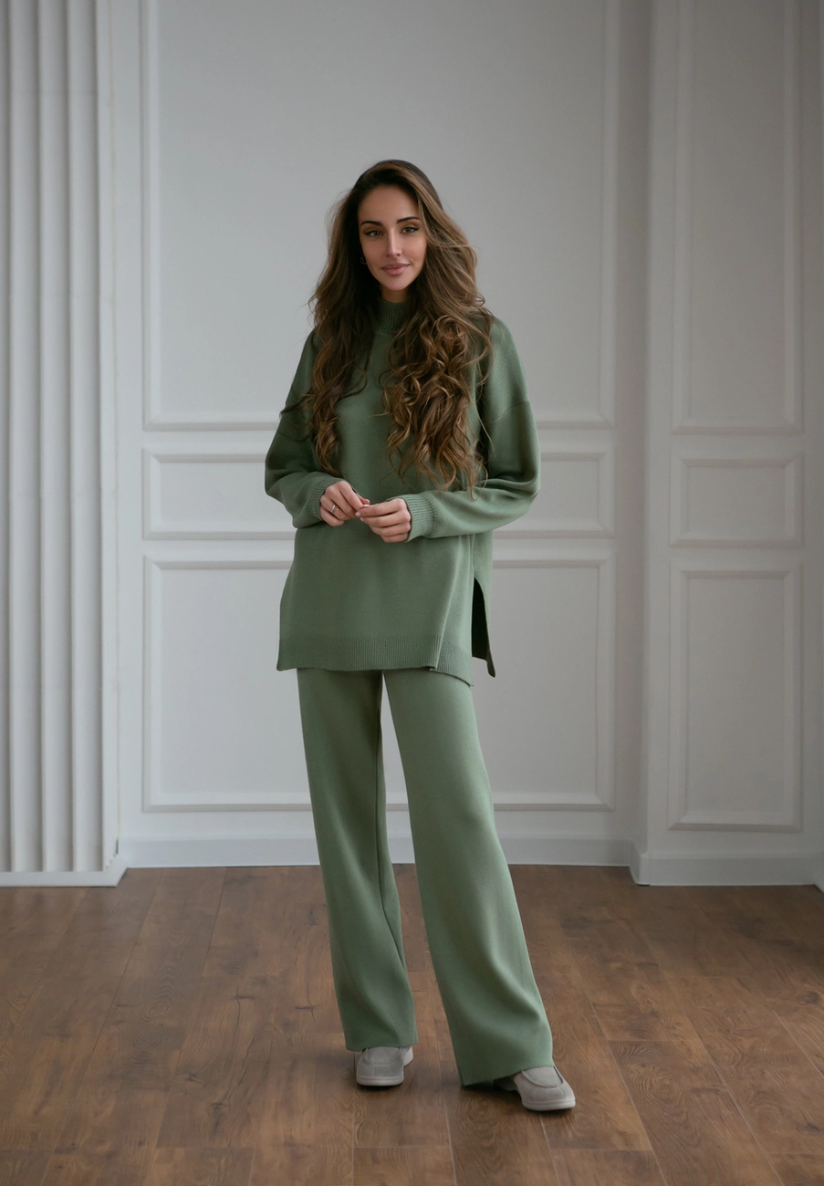 Штани прямі із щільного джерсі, виконані з натуральної бавовни. У кожному розмірі є три довжини штанів.