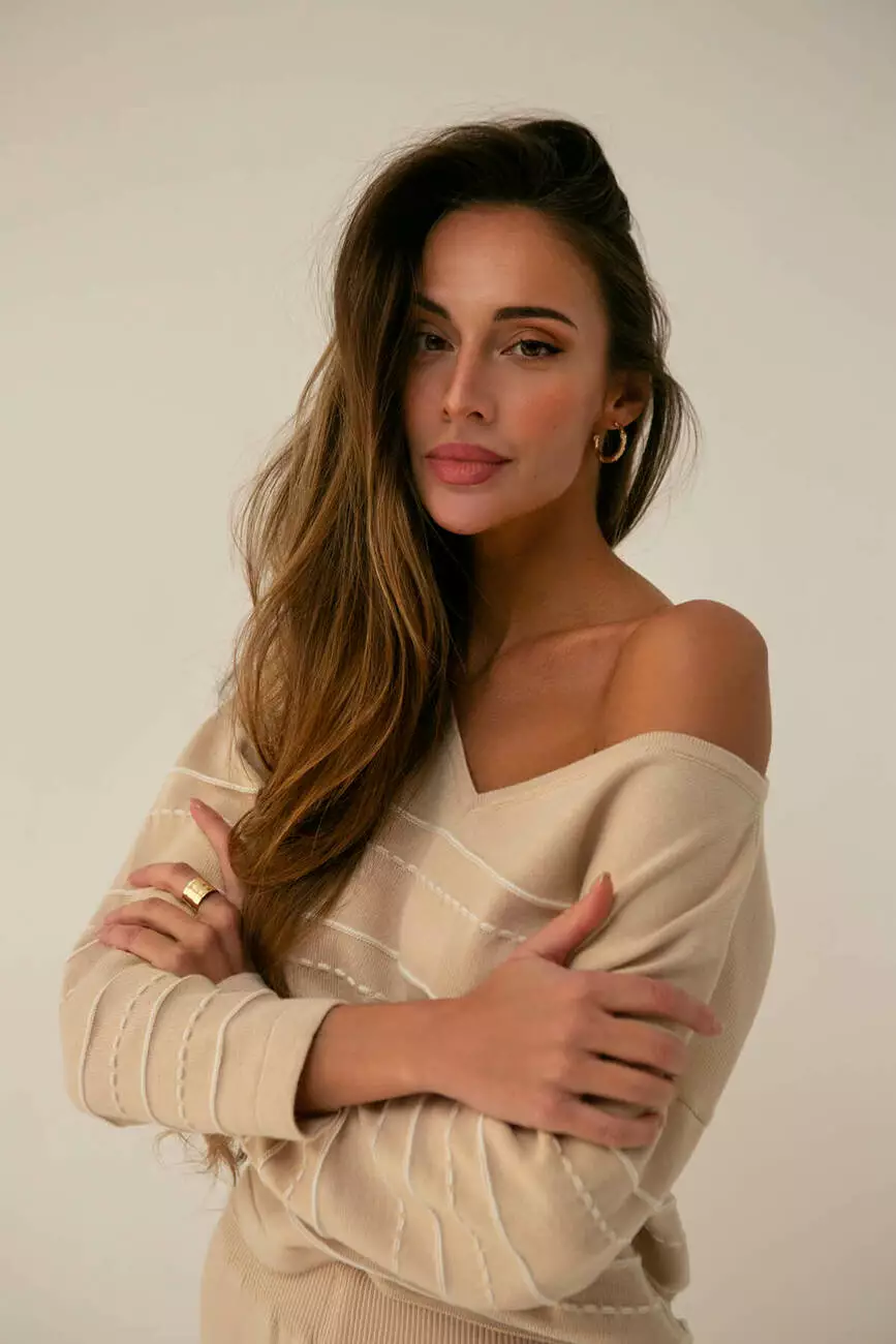 Жіночій джемпер з рельєфними смужками та V-горловиною 90% cotton xs/s, s/m, m/l