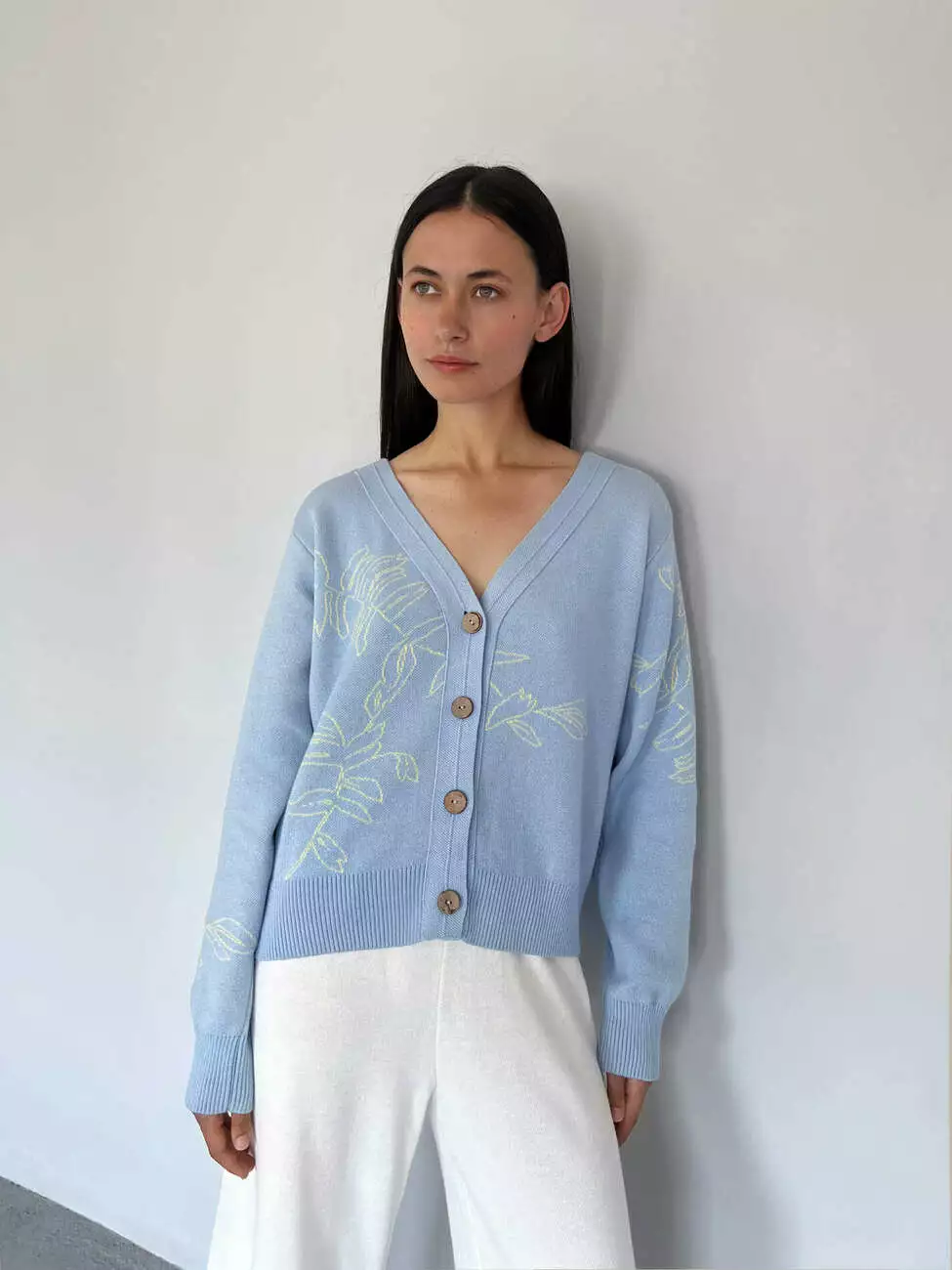 Стильний кардиган прямого силуету на ґудзиках, виконаний із щільної та м'якої бавовни.