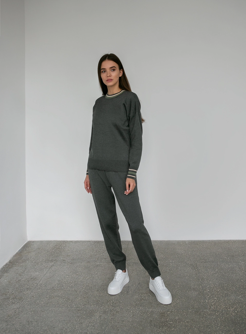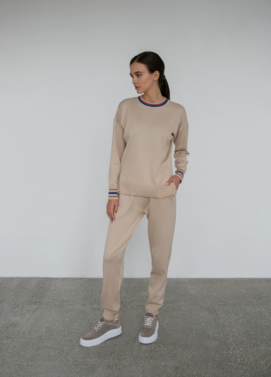 Жіночий костюм джемпер з круглим горлом і штані джогери