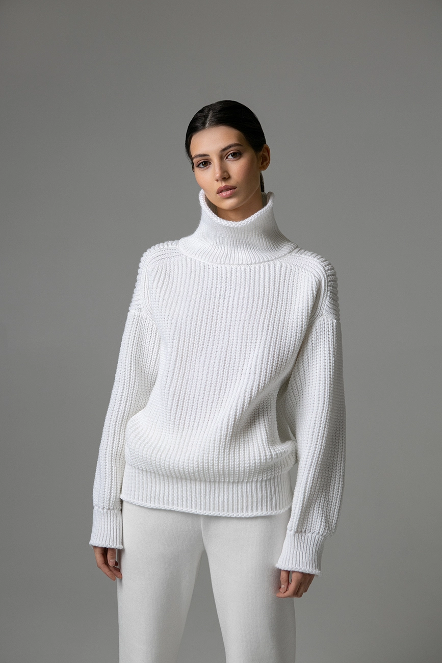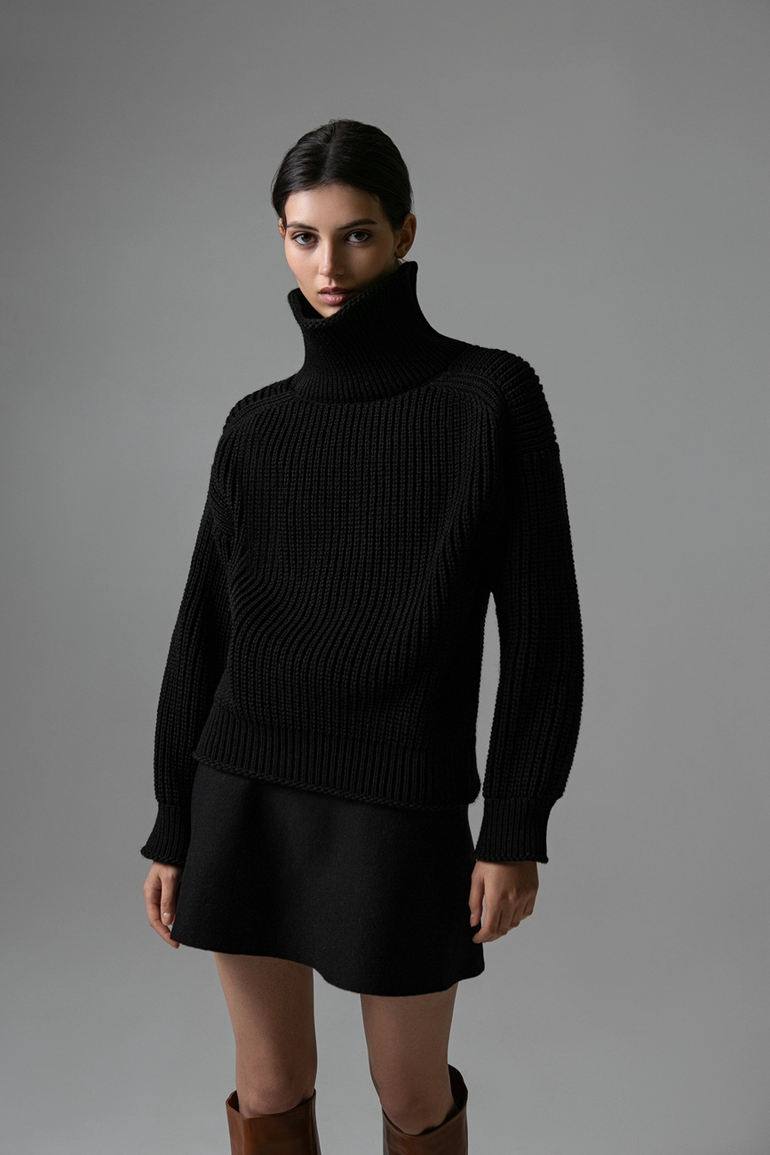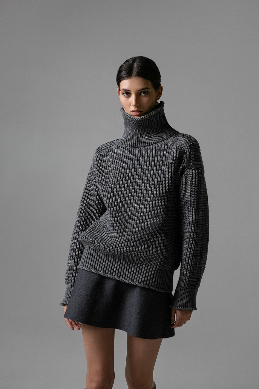 Светр з високим горлом, складним кроєм на плечах, oversize.